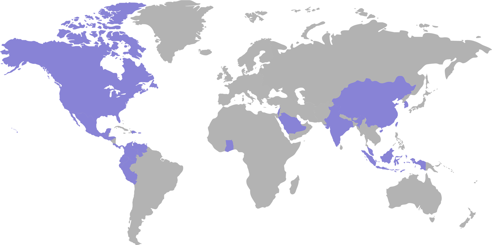 Los países con distribución actual de NutriSource están resaltados en violeta en el mapa de arriba.